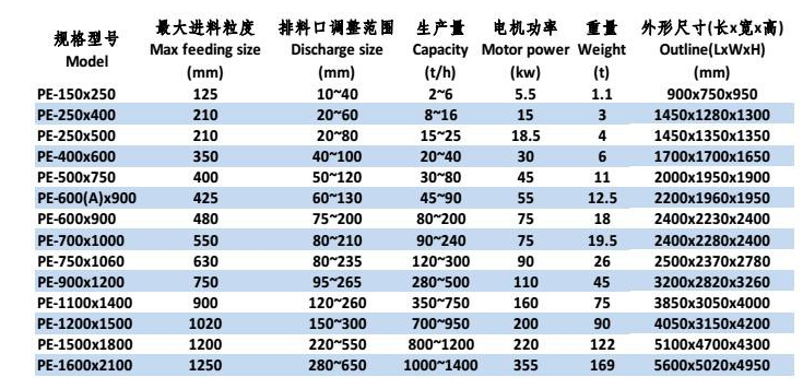 PE鄂式破碎機其優點是:質量較輕,構件較少,結構更緊湊,破碎腔內充滿程度較好,所裝物料塊受到均勻破碎,加以動顎下端強制性推出成品卸料,故生產率較高,比同規格的簡擺顎式破碎機的生產率高出20-30%;物料塊在動顎下部有較大的上下翻滾運動,容易呈立方體的形狀卸出,減少了像簡擺式鄂破產品中那樣的片狀成分,產品質量較好。